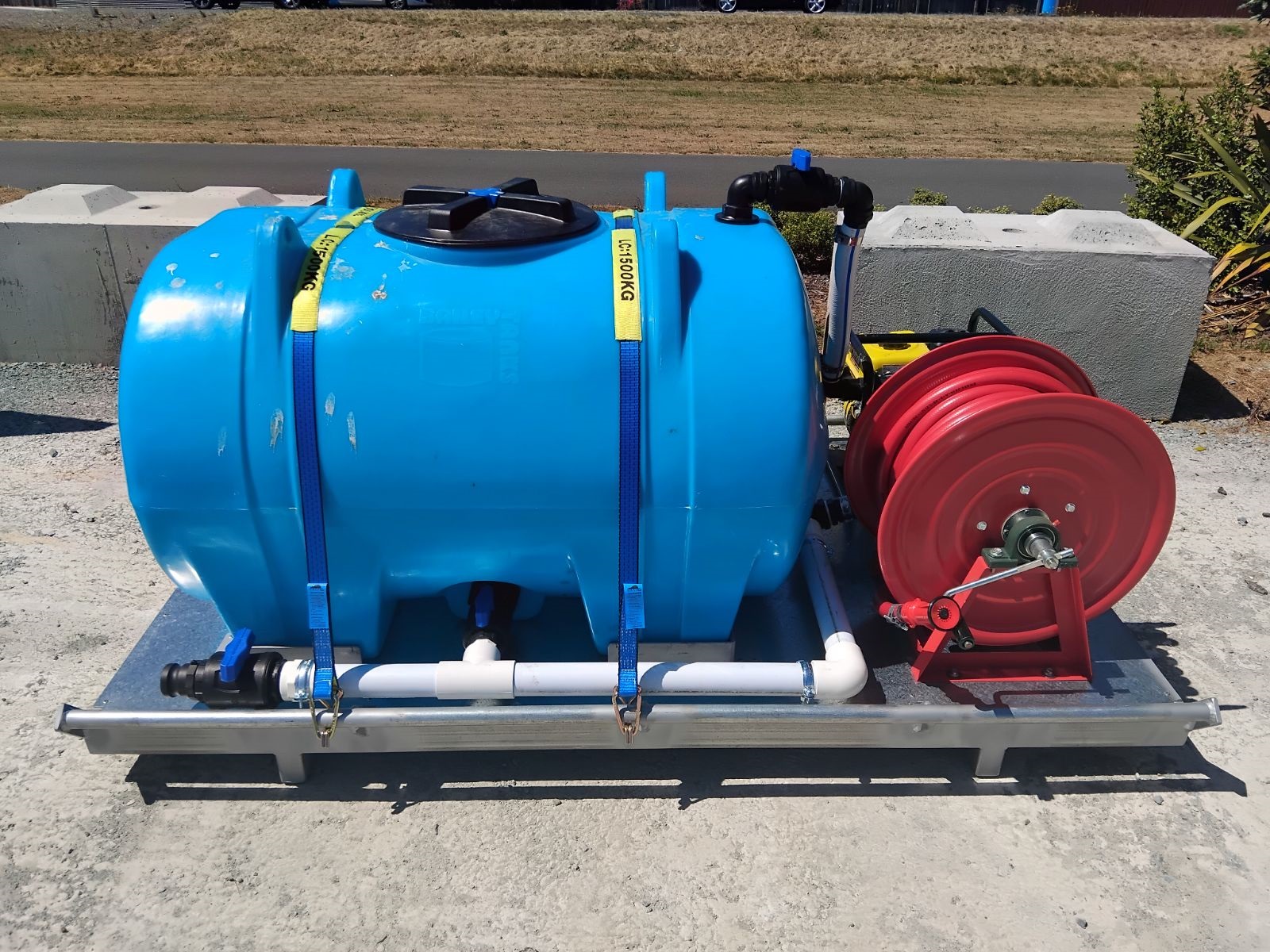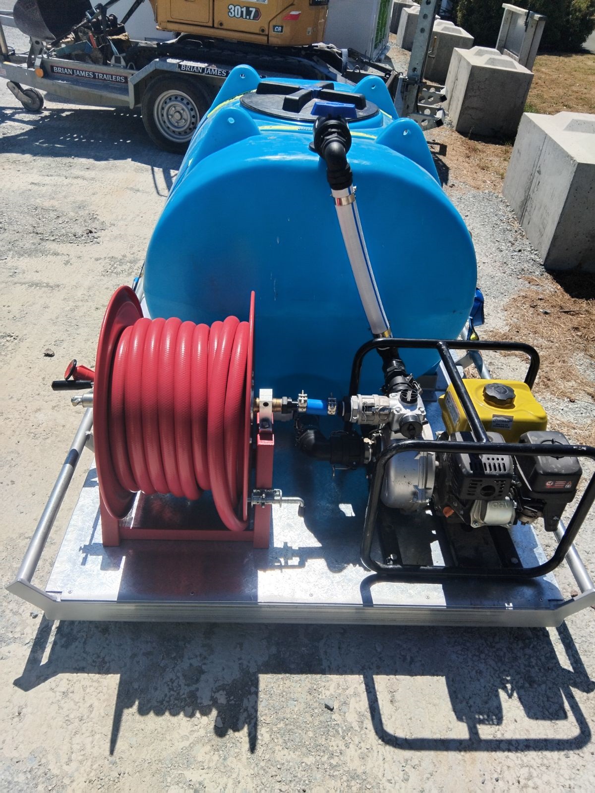 A non-potable water tanker equipped with a 30m x 1″ hose is ideal for watering plants, refilling stock troughs, or providing water on-site where potable water is not necessary. It can be loaded onto a trailer or truck with drop sides, a flat deck, or onto one of our trailers for easy transportation.